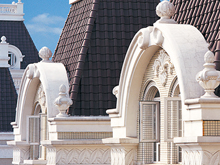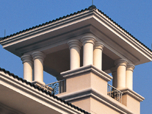 引進外部智力,招賢納才,高薪聘請國內(nèi)資深歐 式建筑設(shè)計專家擔(dān)任企業(yè)技術(shù)顧問,并聘用國內(nèi) 優(yōu)秀設(shè)計師組建設(shè)計團體。在建筑設(shè)計中,設(shè)計 師把握仿真石能任意造型的特點,將建筑的功能 化、藝術(shù)化、人格化和個性化得以充分展現(xiàn),體 現(xiàn)了現(xiàn)代建筑高貴、典雅的風(fēng)格,讓觀者領(lǐng)略了 不同凡響的品味和悠遠(yuǎn)的歐洲文化。